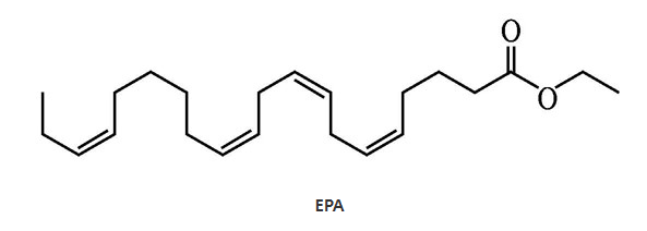 EPA는 20개의 탄소에 5개 이중결합을 가지고 있으며 화학식은 C20H30O2이며 분자량은 302.44 Da입니다. 20개의 탄소로 구성된 사슬에 5개의 cis이중결합을 가지고 있는 화합물입니다.